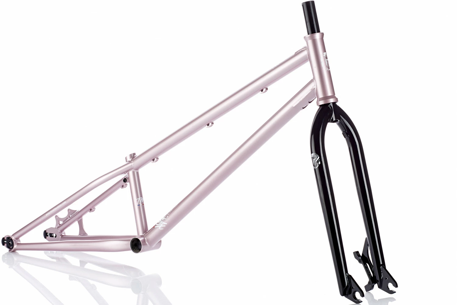 La sérigraphie type Tattoo signée du talentueux rider Français Yann DUNANT est du plus bel effet sur un cadre rose métallisé rend le vélo à la fois classe et sobre.