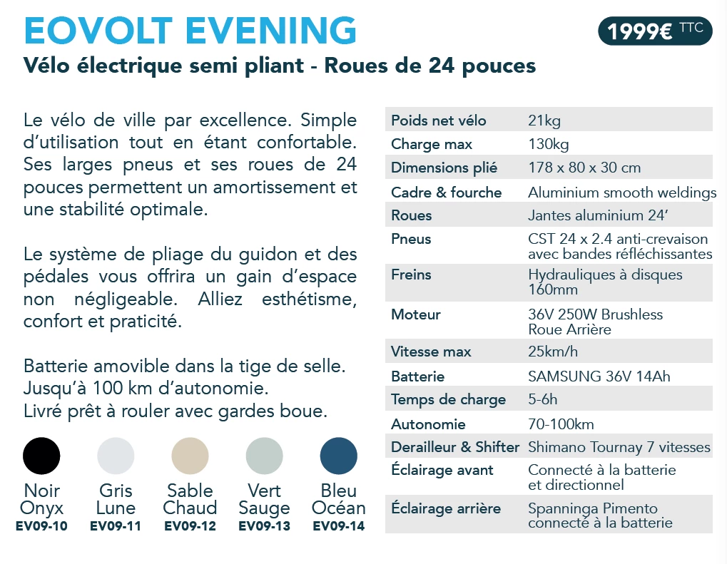 Vélo Semi Pliant Électrique Eovolt Evening Twenty Four Bleu Océan 2022 (EV09-14)